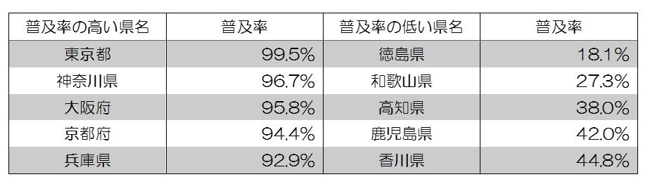 ●首都圏の普及率は東京が高く千葉が低い